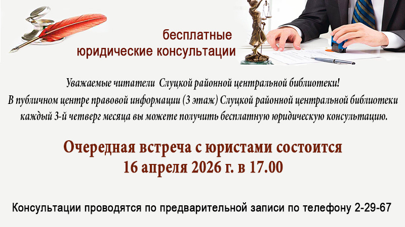 10 апреля 2026 года в публичном центре правовой информации Слуцкой районной центральной библиотеки в рамках информационно-просветительского цикла мероприятий «От налоговой ...