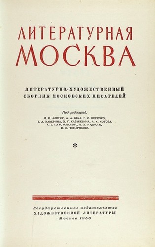 Маргарита Алигер была одним из членов редколлегии альманаха «Литературная Москва», опубликованного в 1956 году. Помимо Алигер, в состав редколлегии входили Вениамин Каверин, Эммануил Казакевич, Константин Паустовский, Владимир Тендряков, Александр Бек. В альманахе были опубликованы стихи Николая Заболоцкого, Анны Ахматовой, Марины Цветаевой, статьи Лидии Чуковской и произведения других «запрещённых» авторов. Было издано два номера альманаха, после чего он был подвергнут разгромной критике и запрещён.