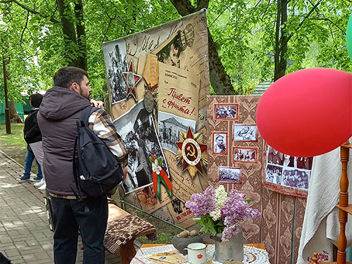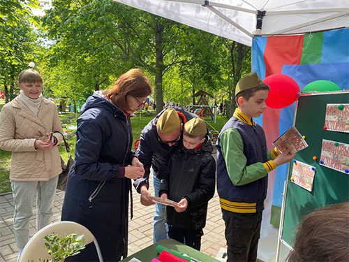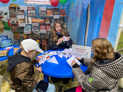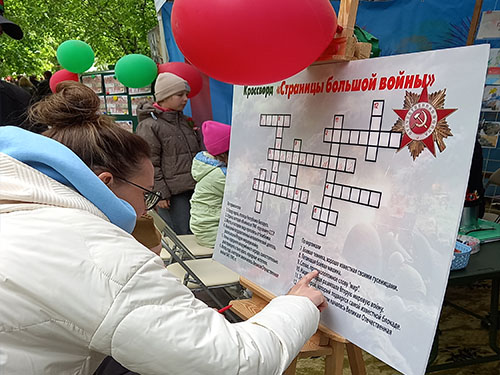 В праздничный день в городском парке действовала патриотическая библиоплощадка «Победа: помним, гордимся!». Слутчане и гости нашего города принимали участие в литературной игре-викторине «В книжной памяти-мгновения войны», литературно-антуражном погружении «Фронтовые истории», с интересом отгадывали кроссворд «Страницы большой войны», активно участвовали в мастер-классах «Журавлик памяти», «Праздничный букет», в создании поздравительной открытки «Салют Победы». Фотоконкурс «Музыкальный аккорд» — стал отличным местом для фото на память!