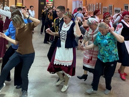 Настоящий фурор произвел фольклорный коллектив народной игры и танцев «Карагод» (руководитель Н.И. Бараш). Мастер-класс по народным танцам не оставил никого равнодушным – в пляс пустились и взрослые, и дети. А музыкально-поэтическая встреча с поэтессами Светланой Францкевич и Людмилой Вечер подарила вечеру особую лирическую нотку.