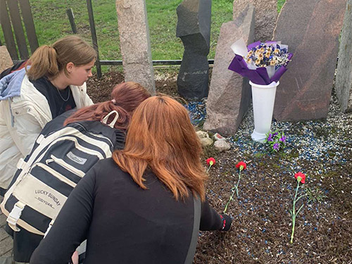 Завершилось встреча экскурсией и возложением цветов к мемориальному памятному знаку узникам слуцкого гетто.