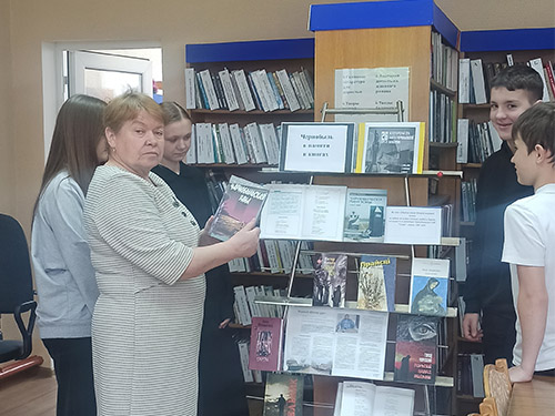 Интересной для участников мероприятия была книжная выставка «Чернобыль в памяти и книгах». Ребята ознакомились с документальными и художественными книгами, рассказывающими о техногенной катастрофе.