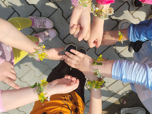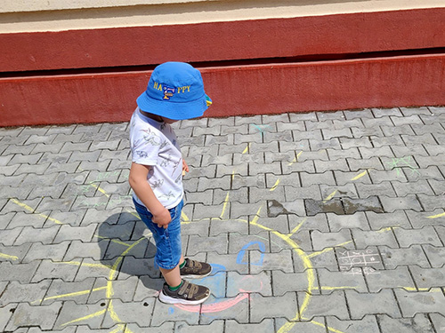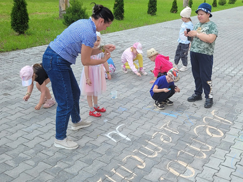 Дальше мероприятие продолжилось на площадке возле библиотеки. Ребята делали себе браслетики из природных материалов, рисовали мелом на асфальте на тему «Лето».