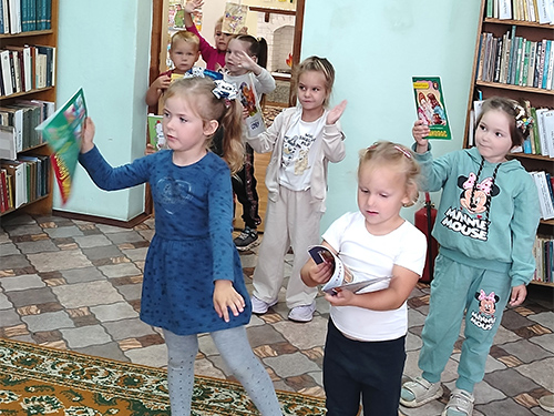 Маленькие читатели активно участвовали в игре «Угадай сказочного героя», отгадывали загадки о книге и библиотеке.