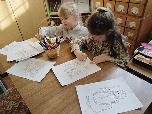 Ребята с увлечением разглядывали книжные полки, на которых живут красивые, увлекательные и заманчивые книжки. В завершение встречи библиотекарь предложила школьникам раскрасить картинки из популярных сказок и отгадать их названия.