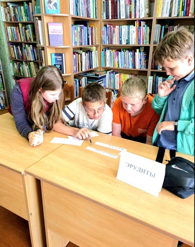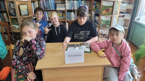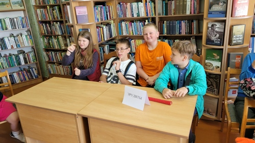 Библиотекарь познакомила ребят с правилами игры. Игровая программа была проведена в форме соревнований между тремя командами: «Мудрецы», «Эрудиты» и «Знатоки».