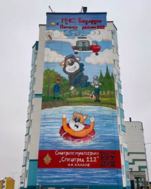 Одно из таких граффити появилось и в Слуцке в молодом, еще строящемся микрорайоне на улице Борисовца — стену одного из домов украсил мурал в стиле безопасности жизнедеятельности. На фасаде изображены персонажи детского мультсериала «Спецотряд 112», который рассказывает о работе спасателей. Автором граффити стал художник Леонид Нефедов, который уже создал один мурал в стиле МЧС в нашем городе.