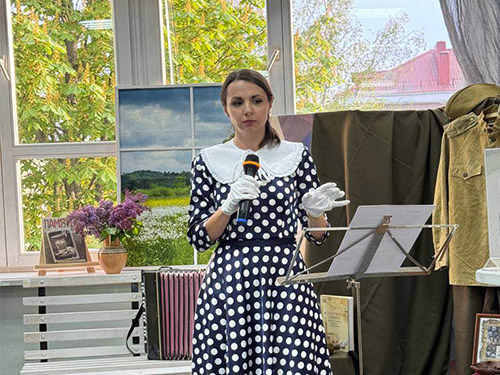 Ведущая мероприятия рассказала о истории создания легендарных песенных шедевров — живых свидетелей военного лихолетья. Информационное сообщение было дополнено видеосюжетом «Песни нашей Победы».