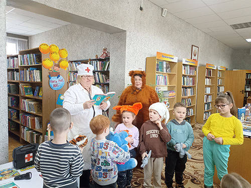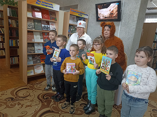 Ребята отправились в веселое путешествие по страницам любимых сказок. Библиотекарь рассказала о жизни и творчестве писателя и напомнила, что его произведения знают и любят уже многие поколения детей. Но самое интересное ждало малышей впереди: на встречу к ним пришли герои сказок — Доктор Айболит и Медведь.