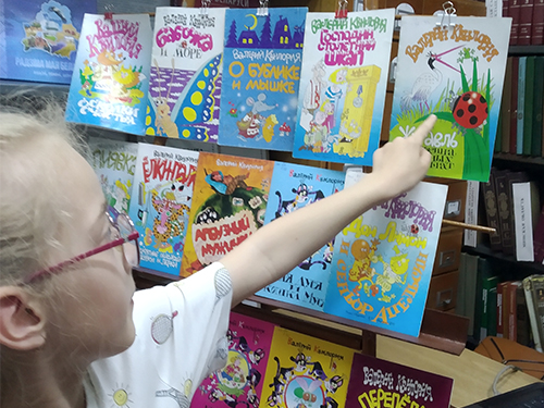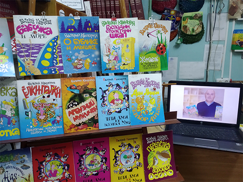 Библиотекарь познакомила ребят с жизнью и творчеством писателя, провела обзор книжной выставки «Мир книг Валерия Квилория!».