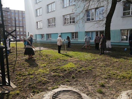 Библиотекари собирали мусор, сгребали прошлогоднюю листву и траву, выпиливали старые сучки деревьев и кустарников. Общими усилиями за несколько часов территория преобразилось.