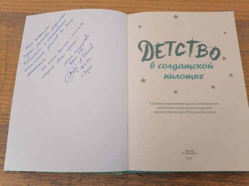 Летчик-космонавт Андрей Федяев, 600 космонавт планеты Земля, с пожеланиями космических успехов и важности помнить историю своей страны передал юным читателям библиотеки в дар сборник произведений русских и белорусских писателей в иллюстрациях учащихся художественных школ России и Беларуси «Детство в солдатской пилотке».