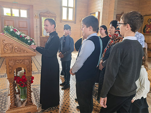 Во время экскурсии диакон Вадим Шустер рассказал школьникам историю строительства храма, познакомил с устройством, внутренним убранством и святынями. Все желающие зажгли свечи и получили в дар иконки преподобного Паисия Святогорца.