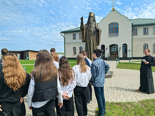 Ребята посетили памятник первому Патриаршему экзарху всея Беларуси митрополиту Филарету (Вахромееву), установленный на территории храма.