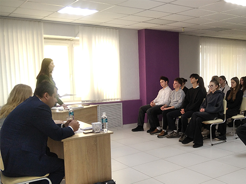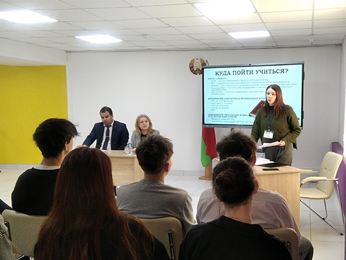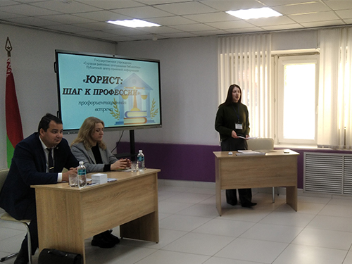 Сотрудник ПЦПИ познакомила участников с историей профессии, с профессиональными качествами представителей юридической сферы, а также рассказала, в каких учебных заведениях Республики Беларусь можно получить эту специальность.