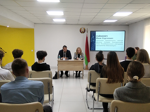 Спикерами стали юристы Слуцкого района: начальник юридического сектора филиала «Слуцкие Электрические Сети» РУП «Минскэнерго» Райкевич Иван Сергеевич и заведующий нотариальной конторой Слуцкого района Зеневич Татьяна Тадеушевна. Специалисты поделились своим профессиональным опытом, рассказали о специфике работы в разных правовых сферах и ответили на вопросы участников о карьерных перспективах в юридической профессии.