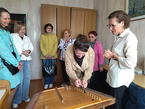 Во время обзорной экскурсии по Лучниковскому центру культуры члены клуба посетили библиотеку — филиал №7 Государственного учреждения «Слуцкая районная центральная библиотека». Библиотекарь Кулеш Ирина Игоревна рассказала про историю создания сельской библиотеки, об известных уроженцах Лучников, познакомила с фондом и литературными экспозициями библиотеки. Ознакомительная экскурсия продолжилась в Государственном учреждении образования «Лучниковская детская школа искусств. Члены клуба с удовольствие погрузились в мир музыки, приняв участие в увлекательном мастер- классе «Игра на цимбалах с нуля».