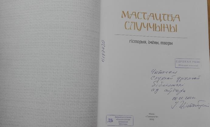 Книга Игоря Титковского «Мастацтва Случчыны: гісторыя, імёны, творы», подаренная читателям детского отдела библиотеки, привлекает внимание и заставляет остановиться, чтобы полистать красочные страницы.