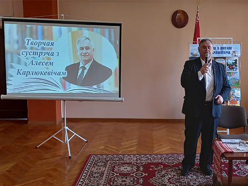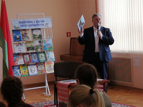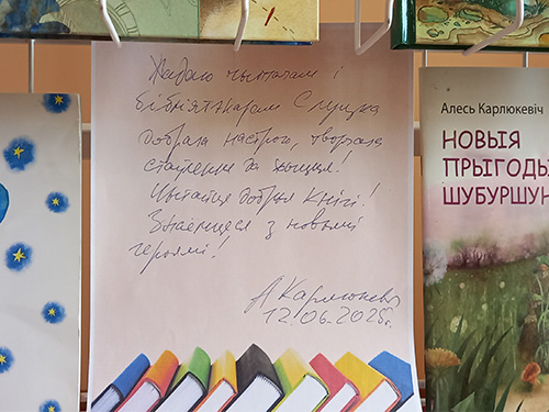 12 июня 2025 года ў дзіцяча-юнацкім аддзеле Слуцкай раённай цэнтральнай бібліятэкі адбылася творчая сустрэча са старшынёй Саюза пісьменнікаў Беларусі, дырэктарам выдавецтва «Беларусь» Алесем Карлюкевічам «Падарожжа з героямі Алеся Карлюкевіча».