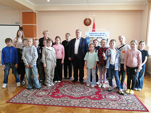 Падчас шчырай размовы Алесь Мікалаевіч расказаў школьнікам пра свой жыццёвы і творчы шлях, выдавецкія планы, цікавыя кніжныя праекты, адказаў на пытанні ўдзельнікаў сустрэчы.