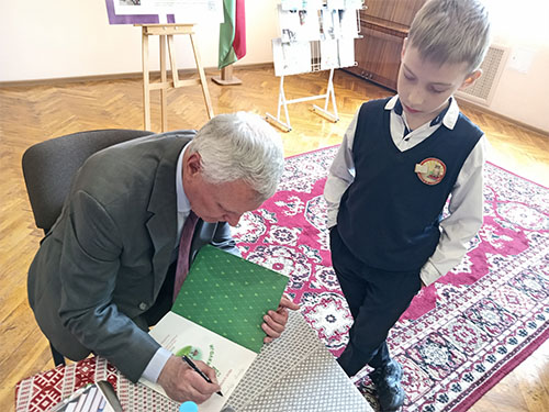 Усе ўдзельнікі творчай сустрэчы на добры ўспамін атрымалі падарунак ад рэдакцыі часопіса “Вясёлка” і аўтографы пісьменніка.