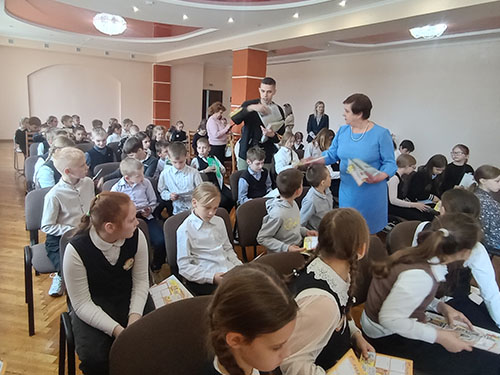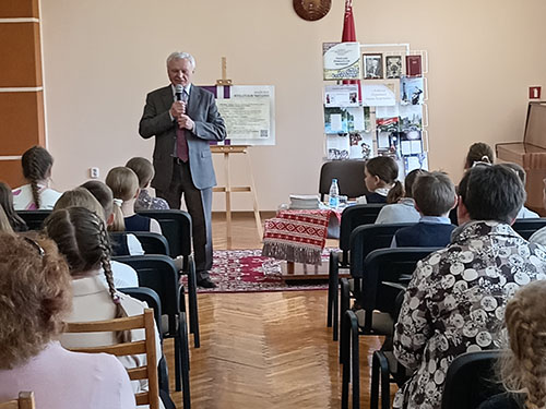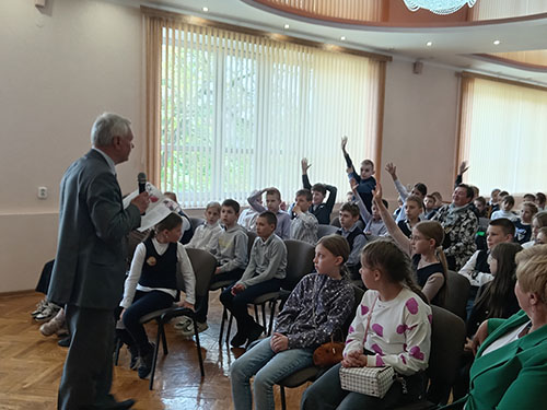 Пад час сустрэчы школьнікі пазнаёміліся з творчасцю пісьменніка, з гісторыямі напісання яго твораў. Асабліва ўразіла юных чытачоў кніга “Азбука Перамогі”, выданне якой было прымеркавана да 80-годдзя Вялікай Перамогі. У аснову аповеду аўтар паклаў факты жыццёвай біяграфіі свайго дзеда-франтавіка, удзельніка Вялікай Айчыннай вайны, Івана Мікалаевіча Карэнды.