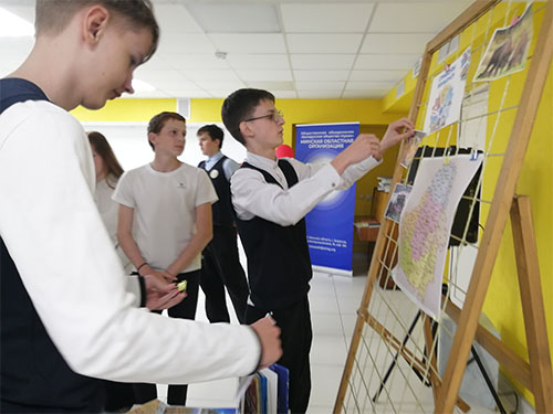 В ходе мероприятия учащиеся вспомнили также и другие символы независимой Беларуси: духовные, культурные, архитектурные, природные. Из них был составлен мудборд на тему «Символы Беларуси».