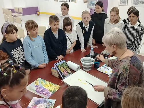Признанный мастер акварели познакомила гостей со своим творчеством и ответила на многочисленные вопросы. Во время мастер-класса Татьяна Дмитриевна наглядно показала этапы работы с акварелью и поделилась секретами мастерства. Атмосферу дополнила выставка-эскиз «Поэзия в акварели».